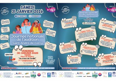 INFORMATION : le Centre social ECLAT en collaboration avec le CLIC de la Dombes, le CCAS de Saint André de Corcy, et l'ASSPREDE va organiser pour la seconde année une journée de l'audition qui va se dérouler en deux temps : Le vendredi 30 janvier à 14h30 : Pièce de... -